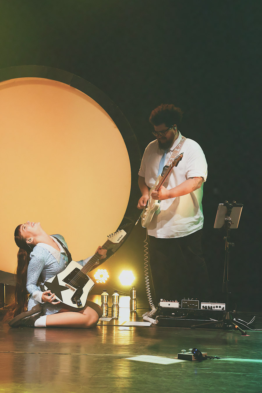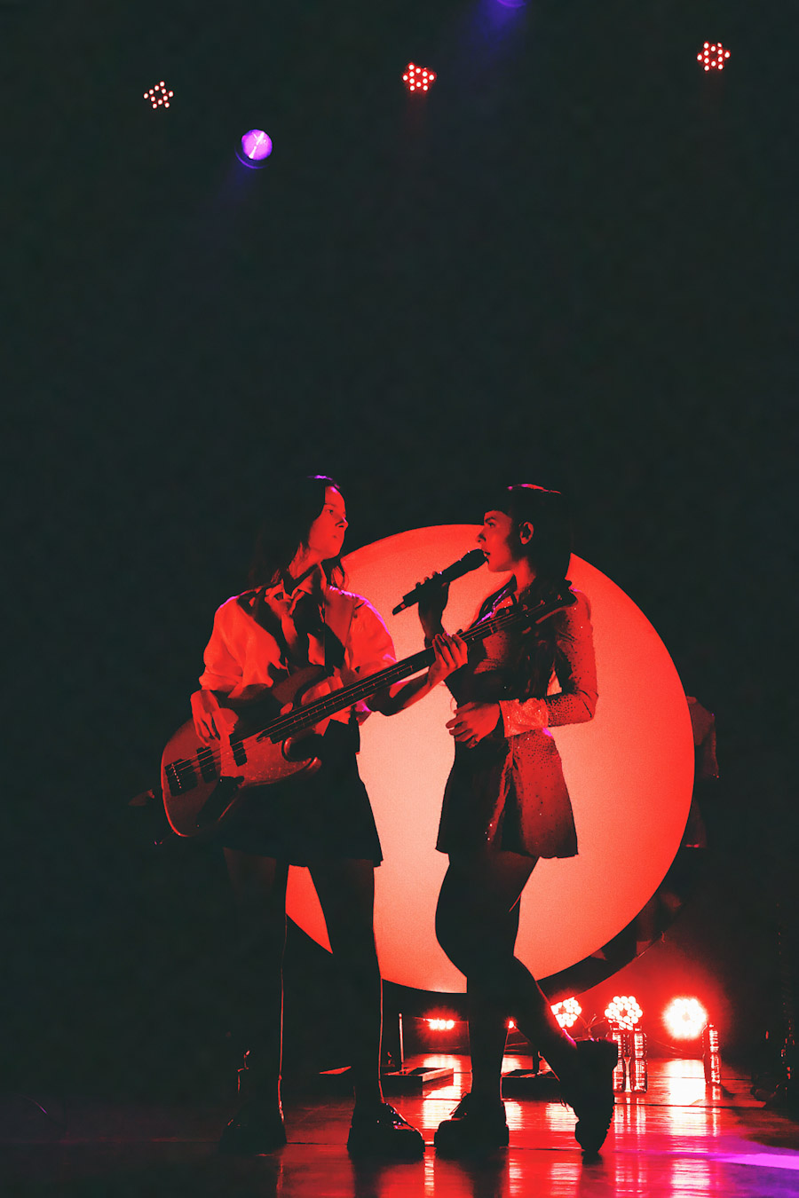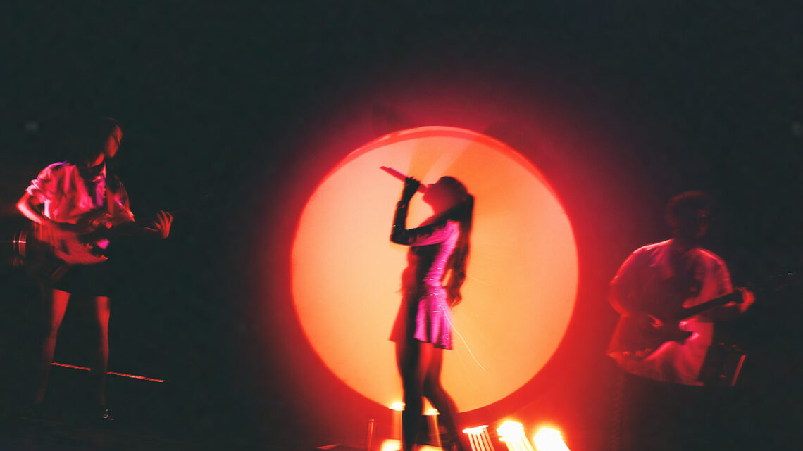 O que rolou no palco foi uma entrega total Julia tem um carisma que transborda e faz questão de quebrar qualquer distância com quem está ali assistindo. Em vários momentos, ela trouxe o público para dentro da performance, transformando o teatro em um espaço de troca real e sem filtro. A banda, com Alana Alberg, Gabriel Quirino, Gabriel Quinto e Gabriel Eubank, segurou um som pesado e cheio de referências a ícones como Rita Lee e Marina Lima.