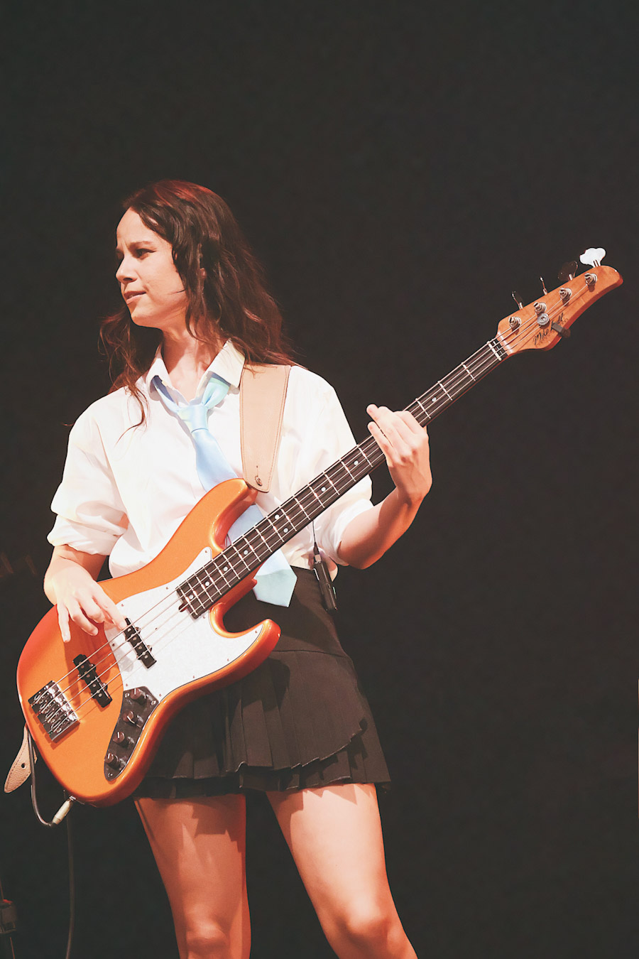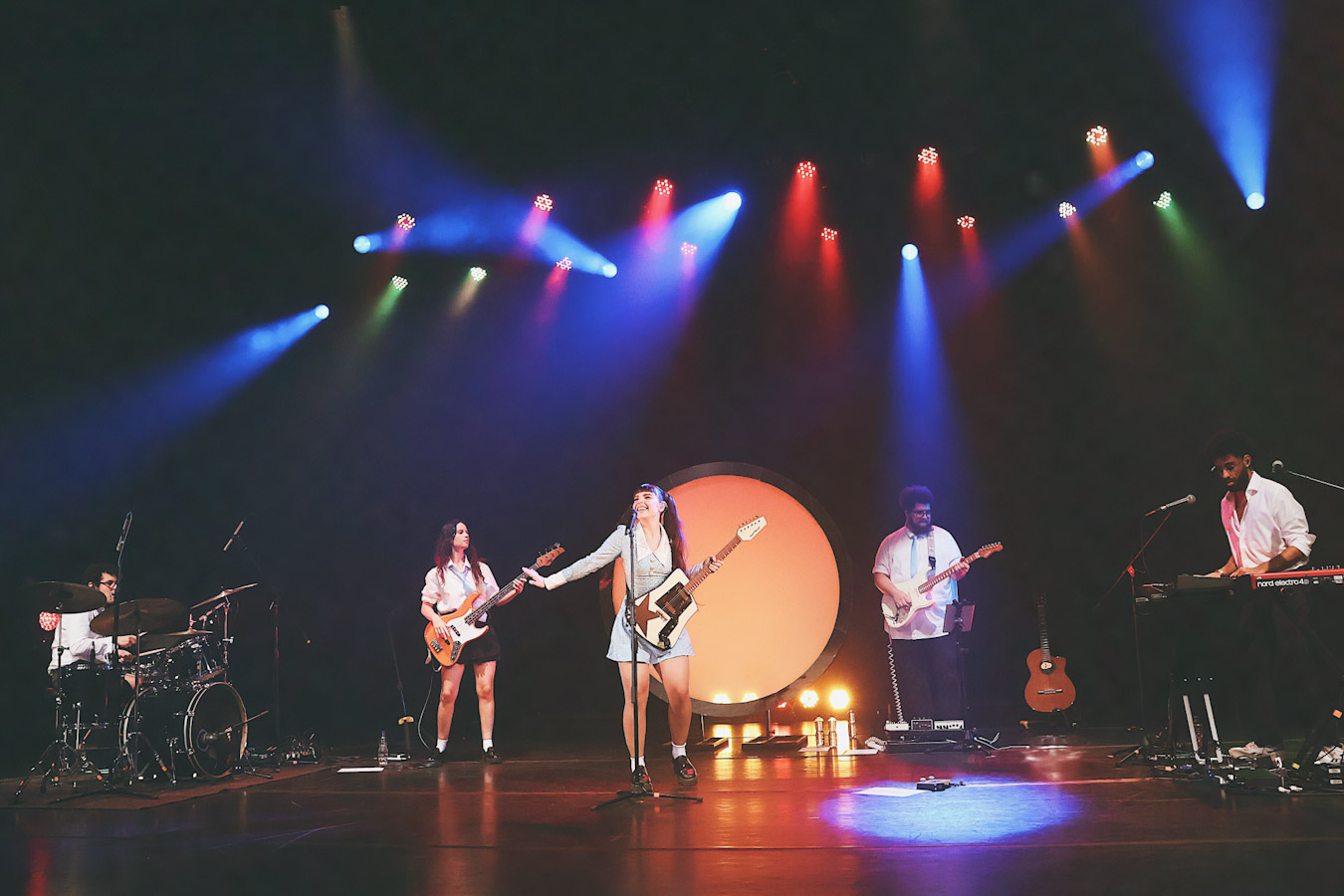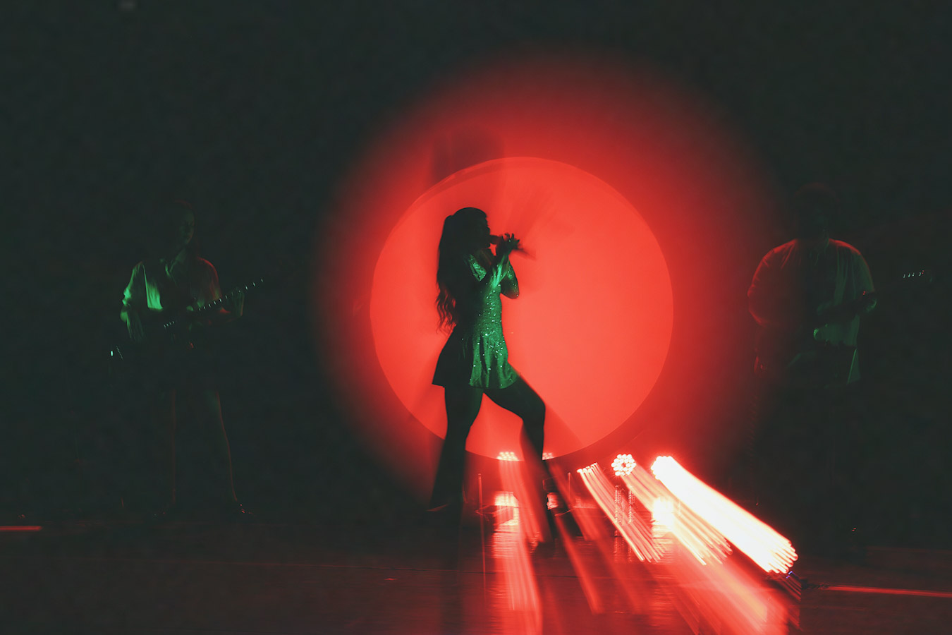 O que rolou no palco foi uma entrega total Julia tem um carisma que transborda e faz questão de quebrar qualquer distância com quem está ali assistindo. Em vários momentos, ela trouxe o público para dentro da performance, transformando o teatro em um espaço de troca real e sem filtro. A banda, com Alana Alberg, Gabriel Quirino, Gabriel Quinto e Gabriel Eubank, segurou um som pesado e cheio de referências a ícones como Rita Lee e Marina Lima.